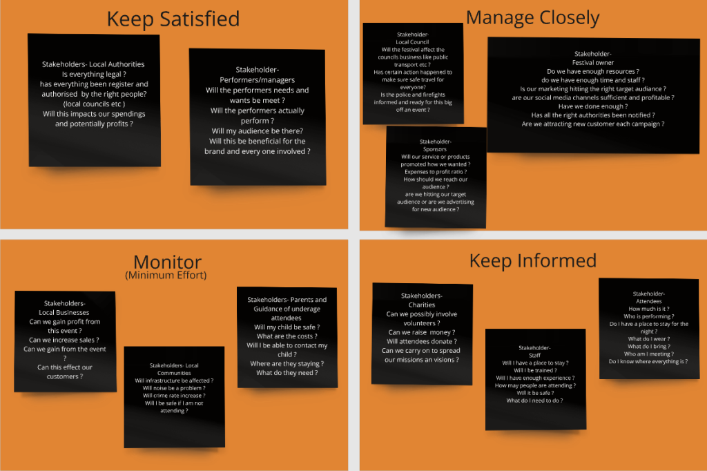 ‘The CLOUT’ festival is from the age of 16 although they allow children from the age of 13 with the supervisor of a parent or a guardian CLOUT’s main target audience is 17-28 as CLOUT’s official sponsor but also official third party ticket holder ‘TIXY’ states that that’s the most popular age range to attend this festival. Therefore, CLOUT is very social media based as most of their promotion and marketing takes place on Instagram to reach that target group. Following comprehensive background research, I have identified the stakeholders that have been incorporated into this grid which outlines their motivations for being interested in CLOUT festival.