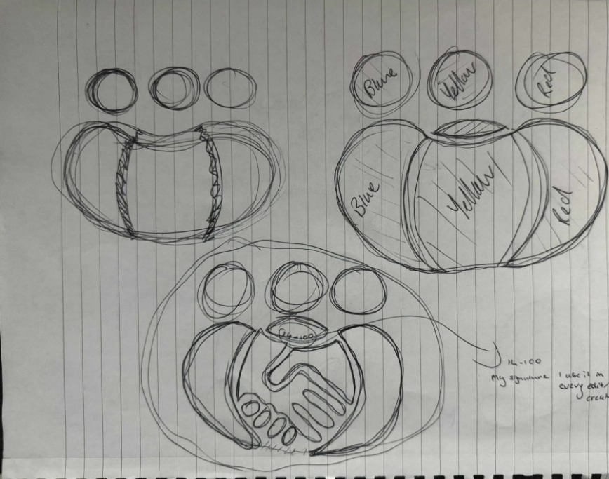As I briefly mentioned in the logo sketch section, my main goal was to create an inclusive logo, which was the central idea. Therefore, I decided to make the focal point three people to showcase a collective of individuals working together. Once the main focal point was established, I felt something was missing; it lacked deeper meaning. So, I created the middle person with a handshake to highlight that the participatory collective is all about inclusiveness and collaboration to help others. It’s almost like a ‘helping hand.’ This blend of two different ideas ultimately created a significant yet simple meaning that emphasises the importance of collaboration, lived experiences, creativity, and the fair distribution of power between communities and researchers. I then refined it in Photoshop by adding a rough and worn-out texture to create contrast and show that, although it is an inclusive community, it still needs help from new researchers, volunteers, and people willing to get involved to finish polishing it into the best version. A small detail is that on the middle person, I added a small ’14-100,’ which you could say is my signature that I include in every single work I produce. The numbers represent the postcode of where I am from, and I find it adds a personal connection to the project.