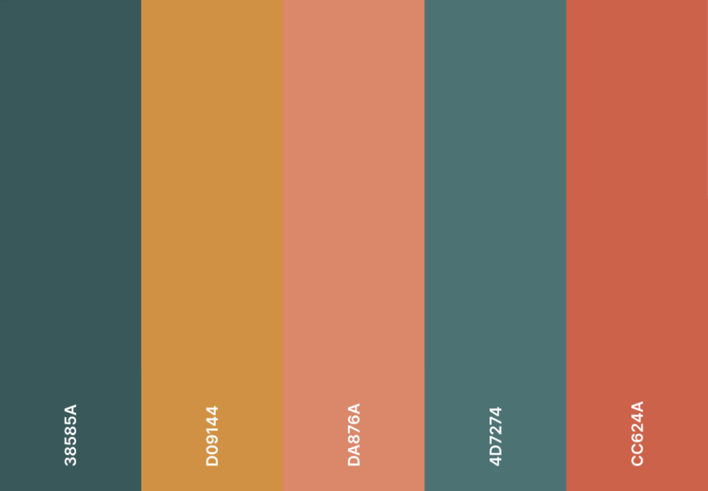 For the third colour, I decided to choose a much warmer and comforting hue, as toned oranges resemble the colours of autumn leaves, sunsets, and hearth fires, creating a cosy and welcoming atmosphere. This is again a key idea of the participatory collective, which aims to be welcoming and comforting to all.