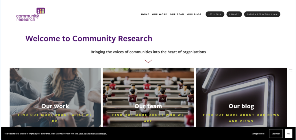 Second competitor screenshot – Community Research (2025) – https://www.communityresearch.co.uk