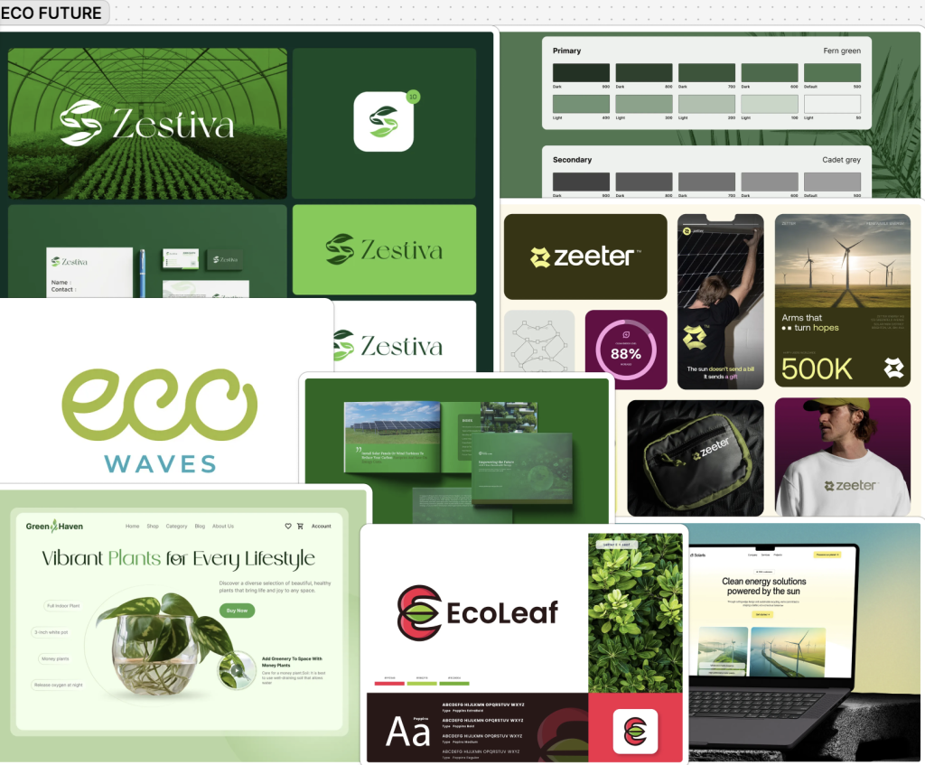 Eco Future was chosen as the brand to advance into the next phases of the project because it presents the best chance for impactful visual communication ethical storytelling and modern digital design exploration. As a company focused on the environment Eco Future needs a visual identity that goes beyond just looks and actively conveys values like sustainability transparency and long-term responsibility. This makes the project particularly interesting as design choices must be made thoughtfully while still meeting the audience’s expectations for eco-friendly brands. The task of balancing credibility warmth and modernity creates a solid base for deeper design development. Eco-conscious brands also have a well established yet changing visuals . Through initial research it became evident that successful sustainable companies utilise muted color palettes natural imagery and calm spacious layouts to build trust with users. Developing Eco Future allows for these conventions to be explored refined and possibly reinterpreted showcasing an understanding of both industry standards and creative innovation. From a digital standpoint Eco Future is well positioned for the next stages of the assessment including brand identity UI design and online presence. Brands that focus on sustainability benefit from strong storytelling across websites and digital platforms allowing typography color imagery and layout to work together seamlessly. This makes Eco Future perfect for demonstrating design consistency and strategic thinking across various points. In summary, Eco Future was selected because it offers the most creative potential aligns with current design and trends and provides clear opportunities to showcase research driven purpose oriented design throughout the rest of the project.