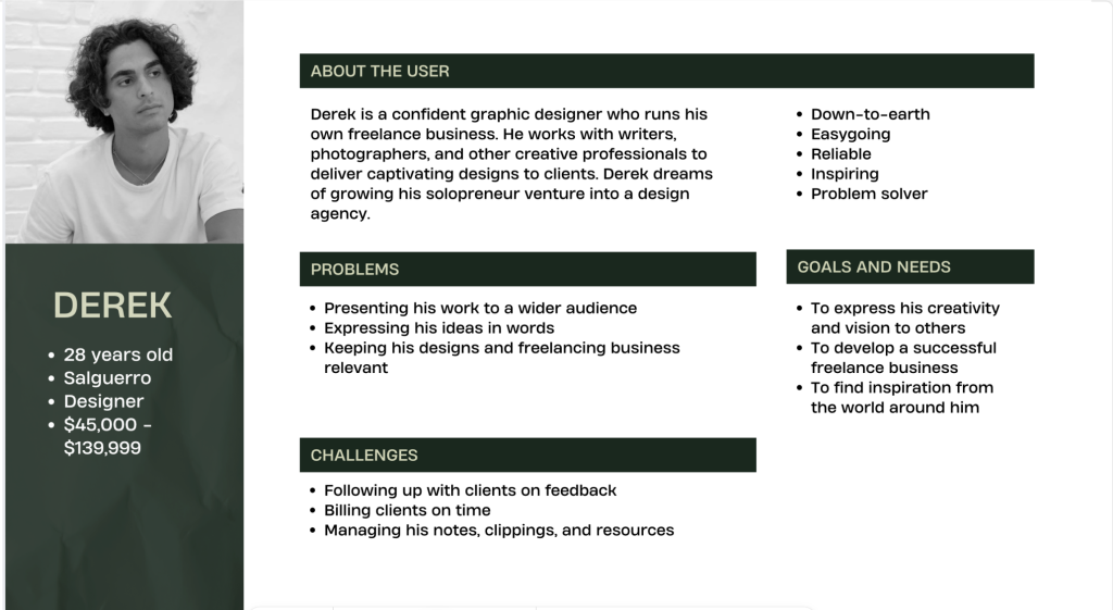 Initially, I promptly resolved to create a user persona representing potential customers or the audience that could utilise my service. This approach facilitates improved decision making and fosters more user-centered choices thereby ensuring that the final product genuinely addresses the needs of the audience.