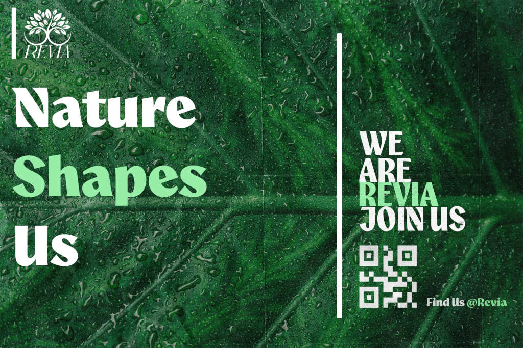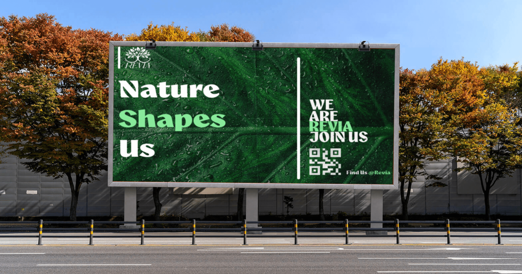 Additionally there is a billboard poster designed to engage the audience with the company. Once again the branding remains consistent throughout with the greens contributing to a vibrant natural theme that Revia aimed to achieve.